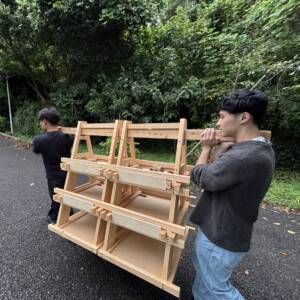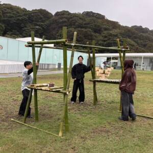 今年の作品は、私たちの研究室が岩出山プロジェクトで展示している竹の作品を野菜小屋として活用したものです。