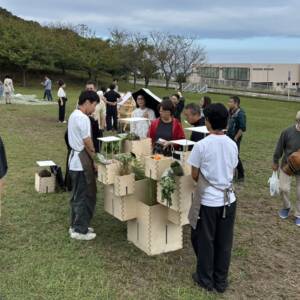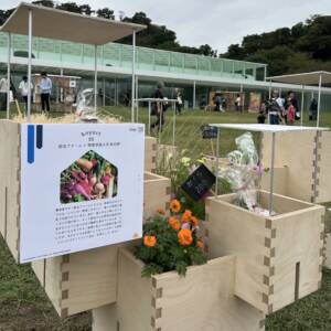 土や花を植えた箱や自由自在に組み替えできる工夫で、たくさんの人が楽しく野菜と触れ合える空間になっています🌱✨
